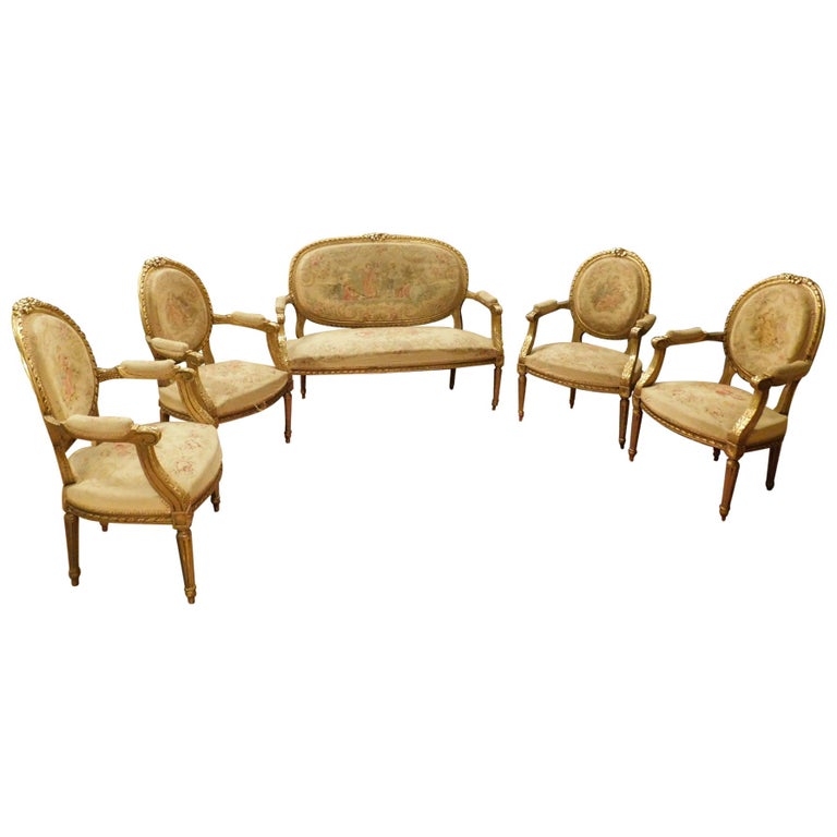 Antique Living Room Four Armchairs And Sofa Gilded Wood 19th Century France For Sale At 1stdibs