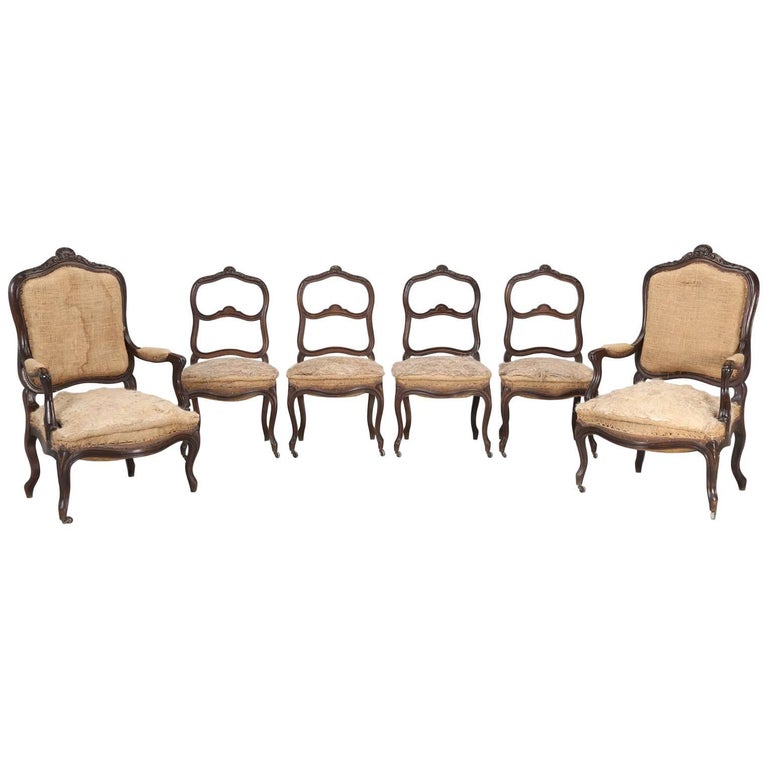 Set Of Six Carved French Antique Living Room Or Parlor Chairs For Sale At 1stdibs