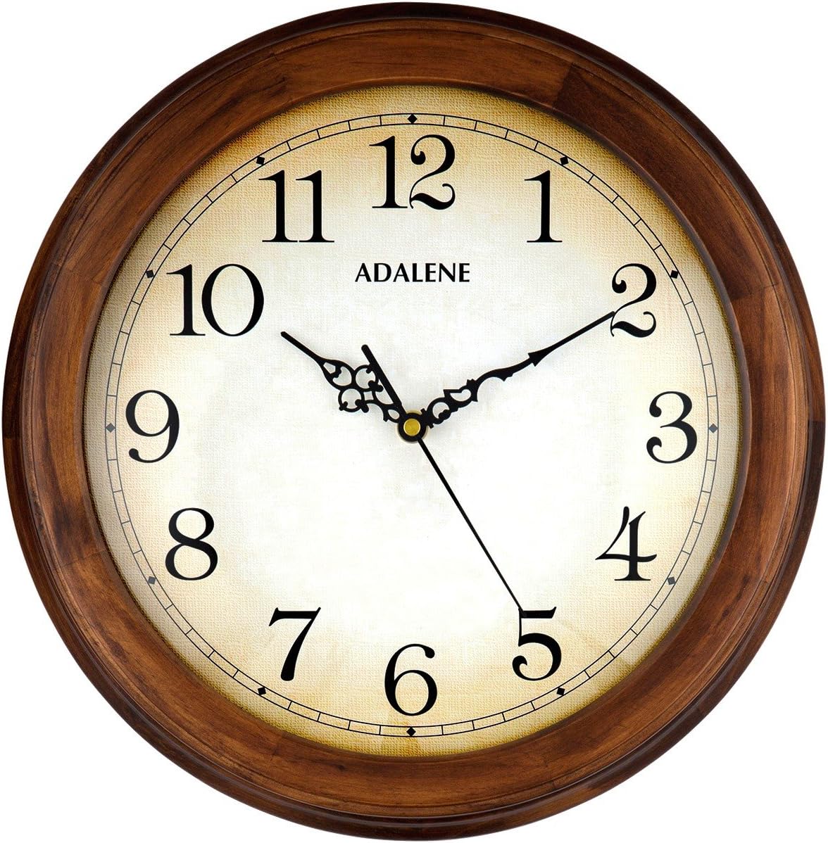 Amazon Com Adalene Wall Clocks Large Decorative For Living Room Decor 14 Inch Wooden Frame Quiet Battery Operated Wood Wall Clock Silent Non Ticking Analog Quartz Movement Large Numbers For Kitchen Bedrooms