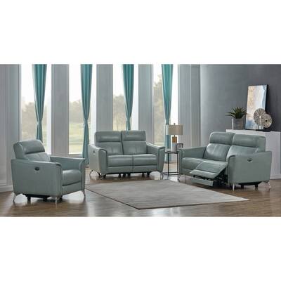 Chatham Blue Genuine Leather Power Reclining Sofa Loveseat Set 2 Navona Hydeline Navona 6783sl2199 Set 2