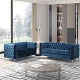 American Eagle Furniture Ek069 Lb Light Blue Sofa And Loveseat Set Italian Full Leather 2pcs Ek069 Lb Set 2
