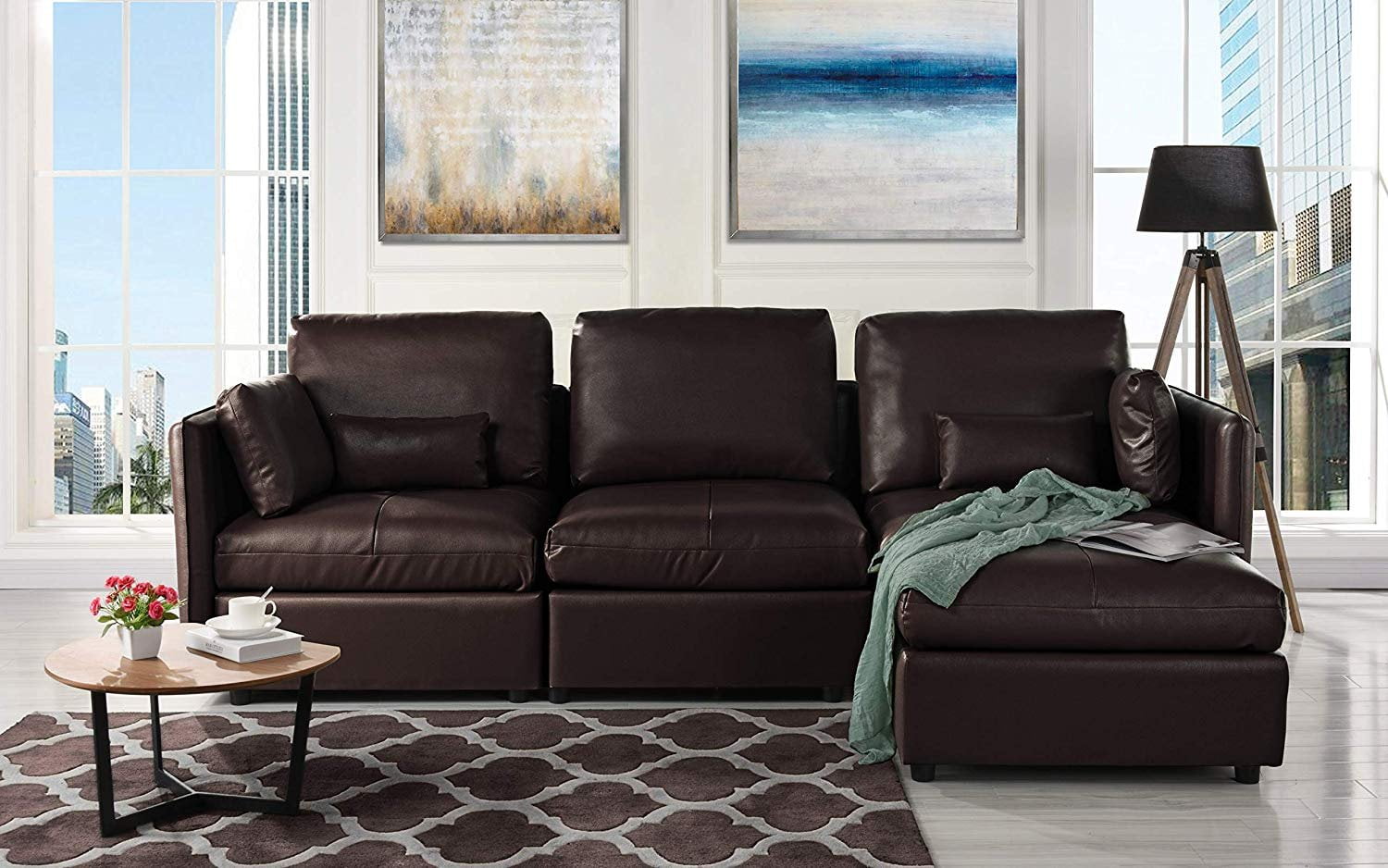 Amazon Com Brown Leather Sectional Sofa