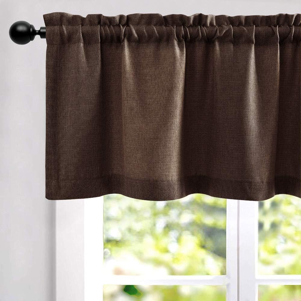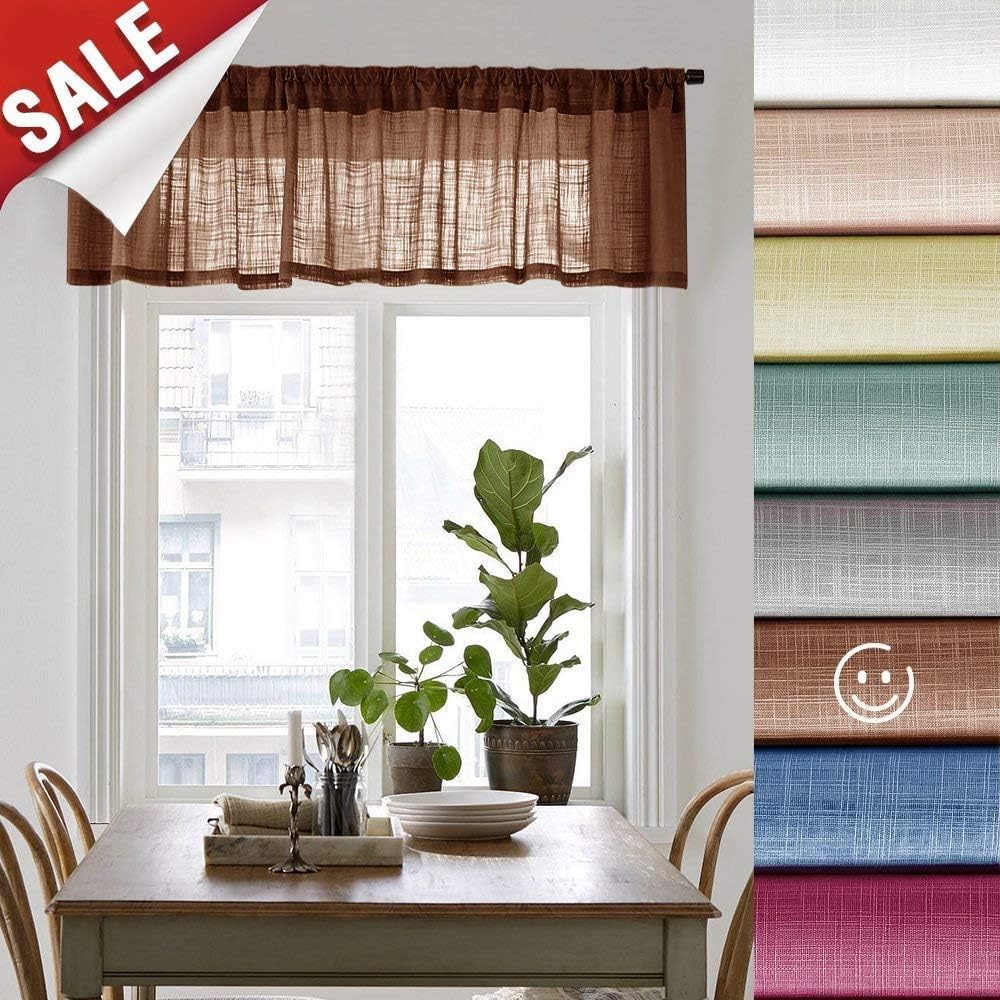Amazon Com Jinchan Sheer Valance Curtain Linen Textured For Kitchen Living Room Bedroom Window Rod Pocket 1 Panel 16 Inches Long Brown Kitchen Dining