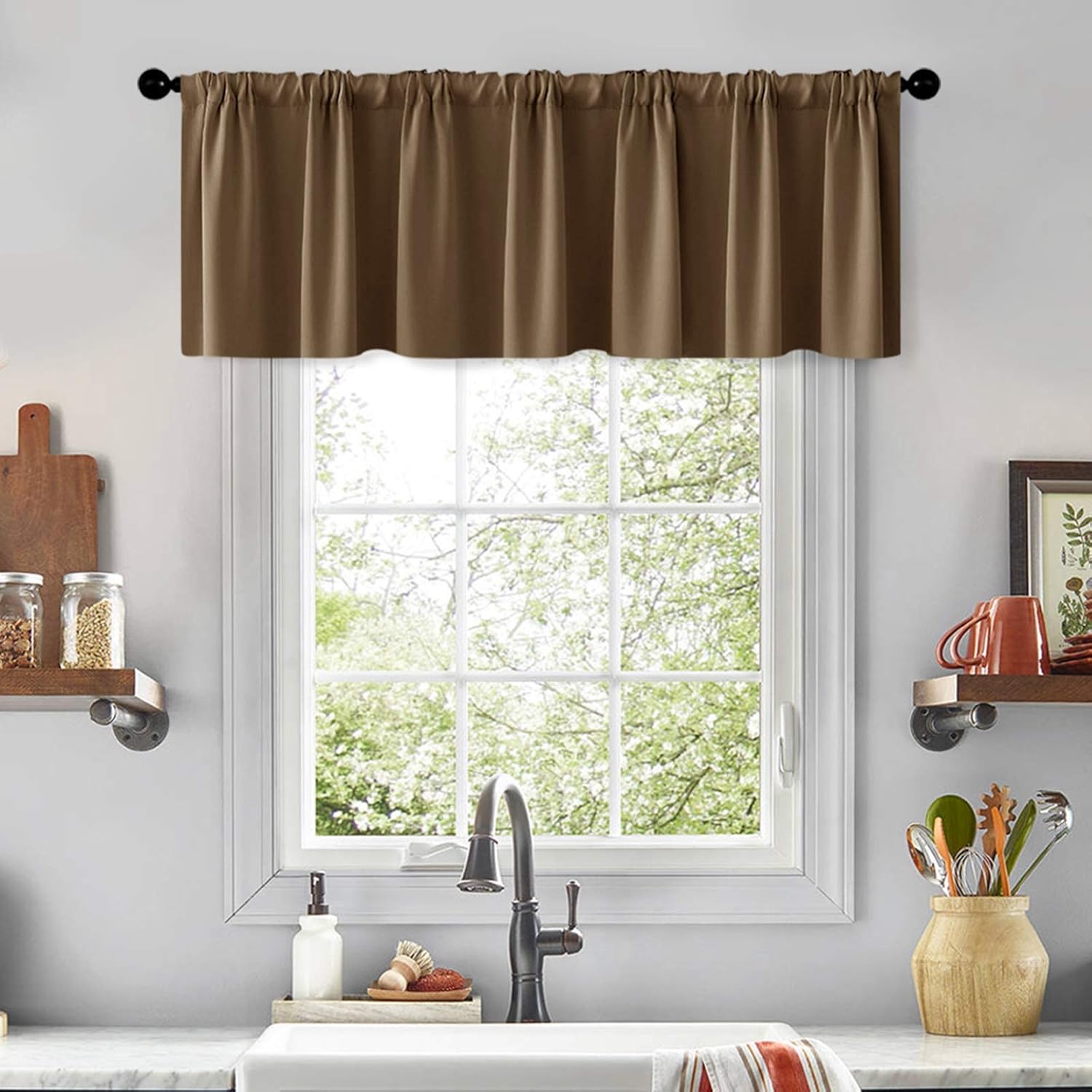 Amazon Com Brown Valance For Living Room Linen Textured Room Darkening Window Treatments For Kitchen Rod Pocket Valance 1 Panel 16 L Kitchen Dining