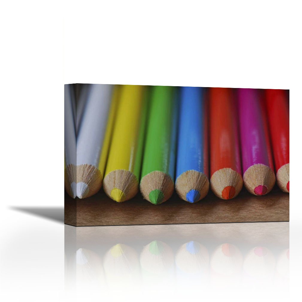 Karmakara Row Of Multicolored Colored Pencils Lay On Table Print On Canvas Floral Botanical Abstract Art Wall Painting For Living Room Bedroom Drawing Room Ready To Hang Image Size Is 14