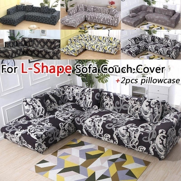 New 2pcs Covers For Sofa L Shape Living Room L Shaped Couch Slipcover Case Chaise Longue Corner Sofa Cover Elastic Stretch Wish