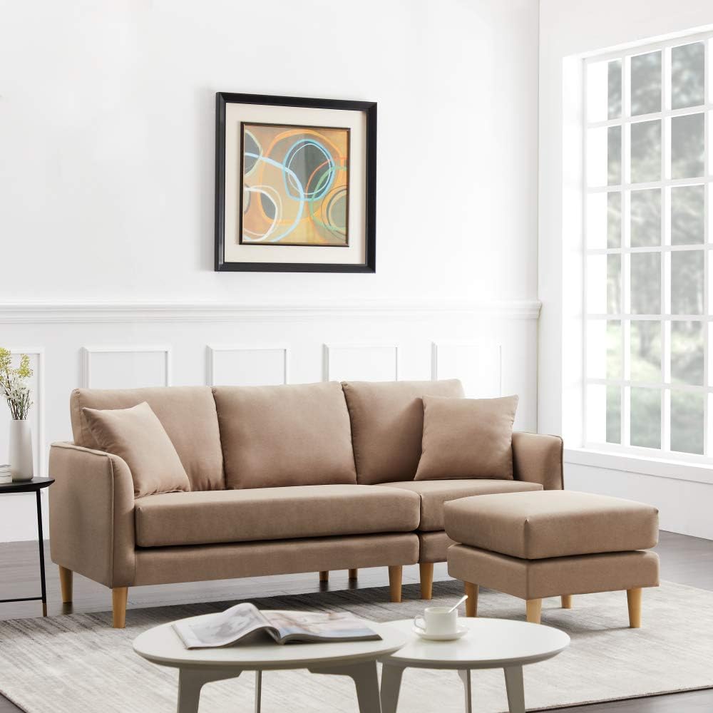 Amazon Com Pannow Convertible Sectional Sofa Couch For Living Room L Shape Sofa Couch With Modern Linen Fabric Reversible Chaise Sectional Corner Couch For Small Space Brown Kitchen Dining