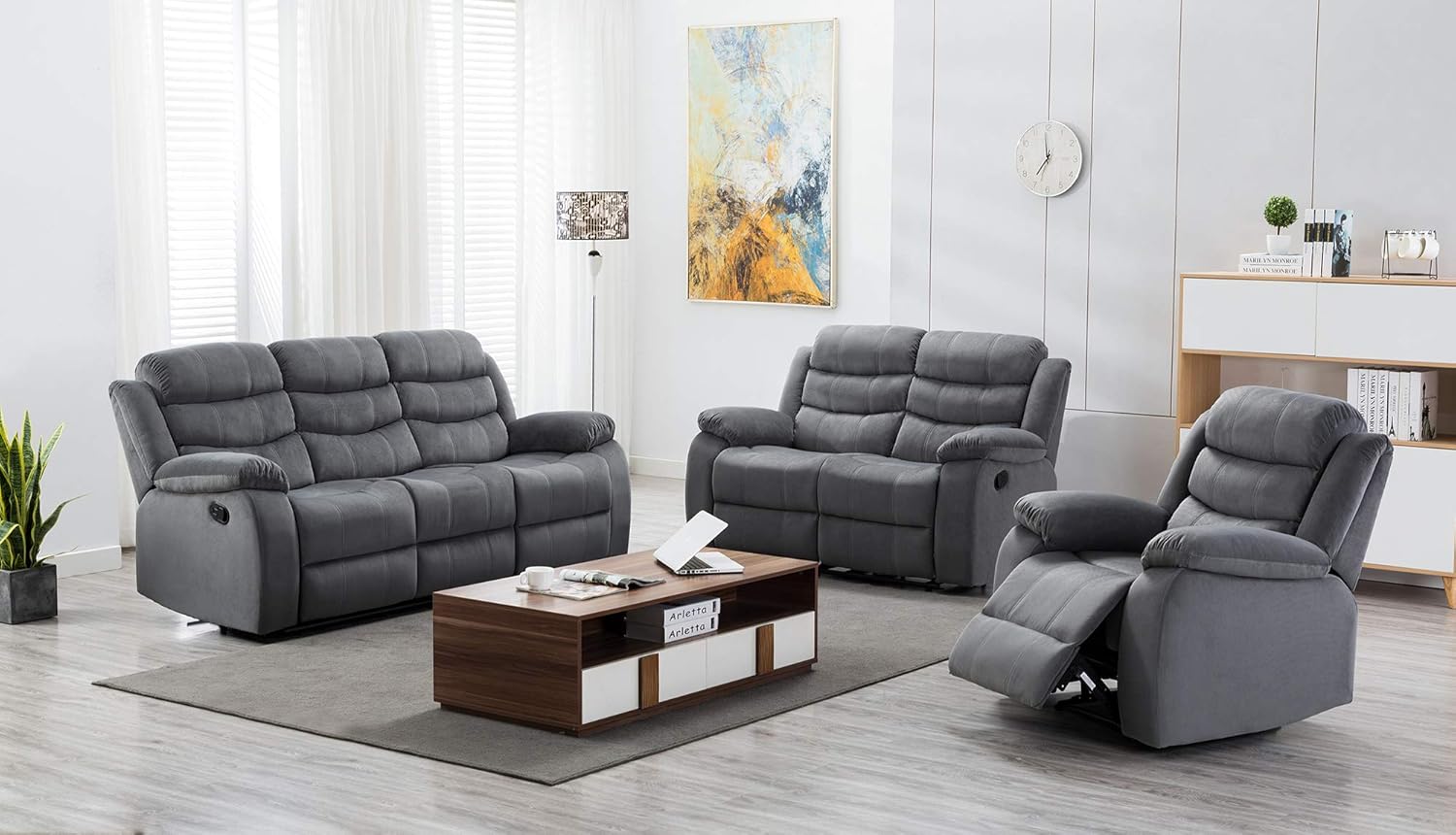 Amazon Com Kingway Modern Fabric 3pcs Reclining Set For Living Rooms Upholstered Manual Motion Couches Sofas 1 Seat Gray Furniture Decor