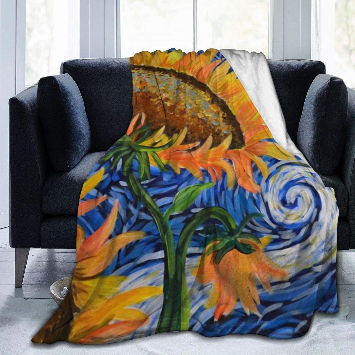 Amazon Com Lodisfoa Starry Night Sunflowers Fleece Blanket Throw Lightweight Blanket Super Soft Cozy Bed Warm Blanket For Living Room Bedroom All Season Kitchen Dining
