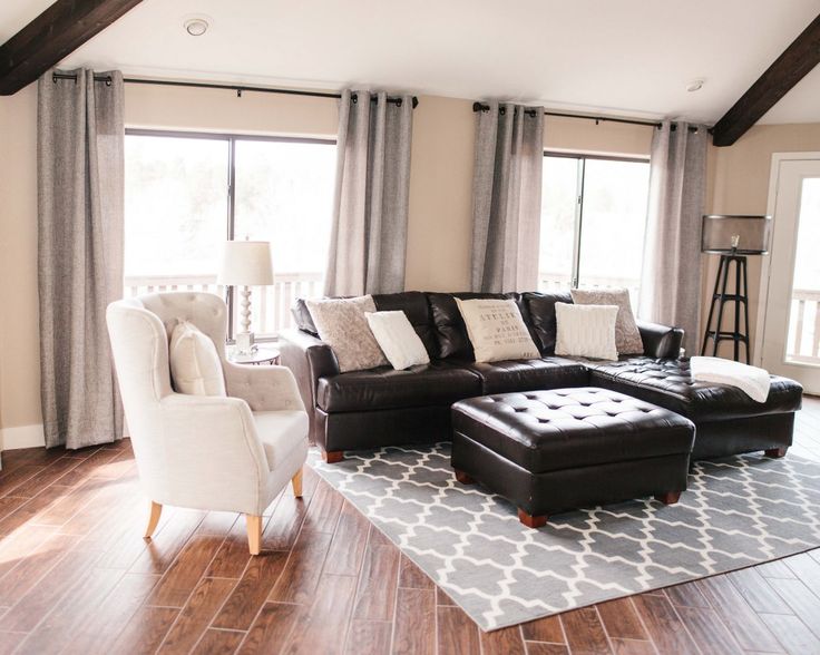 A medium sized living room boasting a dark hardwood flooring topped by a classy rug matching the white seats on the side. Jul 10 2018 explore sharee starkeys board dark brown leather couch decor followed by 138 people on pinterest. These 4 seaters have silenced such.