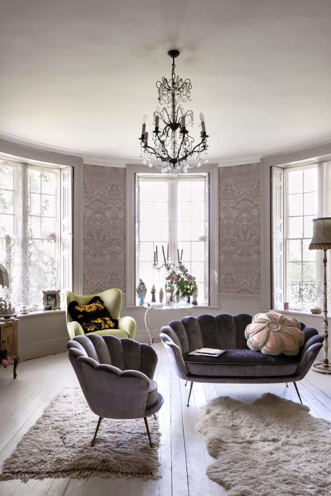 Start with a pale wash of grey over the walls then bring in pieces of weathered wood furniture and faded linen upholstery to give the room a lived in look.