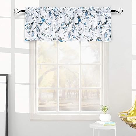 Amazon Com Melodieux Vintage Floral Birds Print Rod Pocket Valance For Living Room Kitchen Cafe Elegant Plant Twig Leaves Curtain Valance 52 By 18 Inch Blue 1 Panel Kitchen Dining