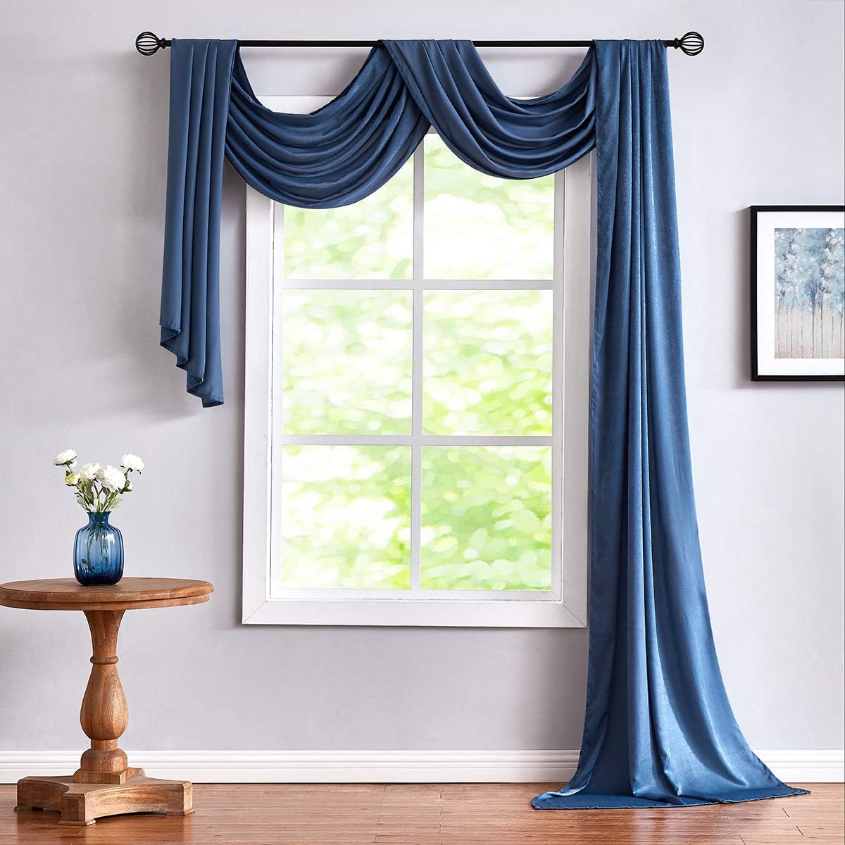 Amazon Com Fmfunctex Blue Valance Scarf Curtain For Living Room Extra Long Silky Soft Window Valance For Window Top 38 X 216 1 Panel Home Kitchen