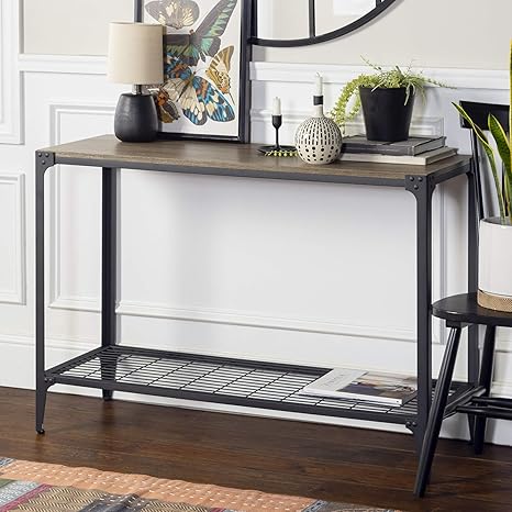 Amazon Com Walker Edison Rustic Modern Farmhouse Metal And Wood Rectangle Accent Coffee Table Living Room Ottoman Storage Shelf 40 Inch Stone Grey Furniture Decor