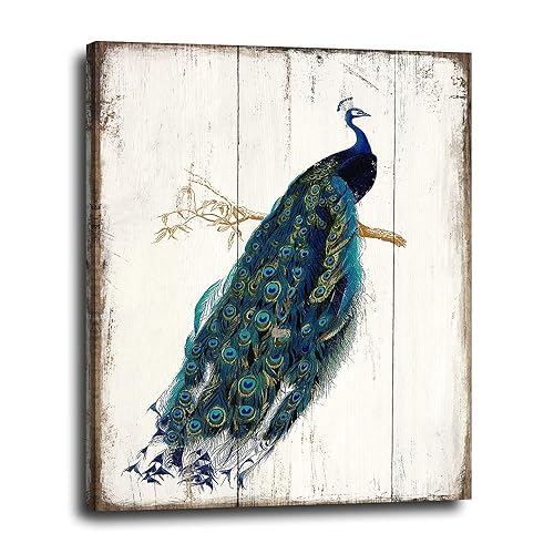 Amazon Com Rustic Peacock Wall Art Print On Wood Wall Art Canvas Retro Farmhouse Home Decoration Print For Bedroom Kitchen Living Room Bathroom Apartment Unique Vintage Canvas Wall Decor Gift 16x20