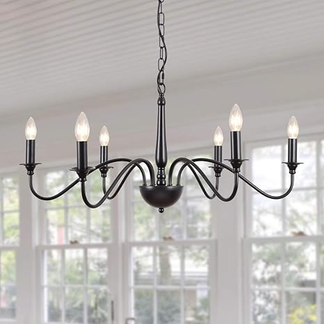Amazon Com Lampundit 6 Light Iron Chandelier Black Farmhouse Chandelier Classic Candle Ceiling Pendant Light Fixture For Kitchen Island Dining Room Living Room Foyer Barn Home Improvement