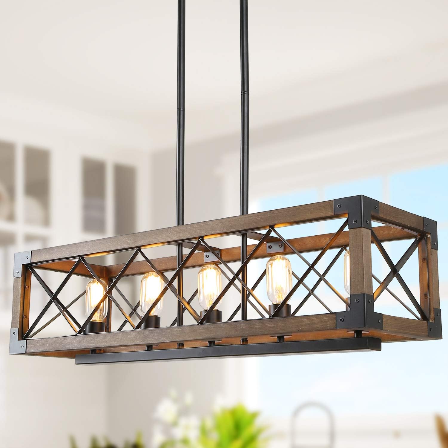 Amazon Com Farmhouse Chandeliers For Dining Rooms Linear Island Lights For Kitchen 5 Light Wood Hanging Light Fixtures For Living Room 43 In Length Home Improvement