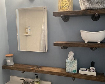 Rustic Floating Shelf Floating Shelf Farmhouse Decor Pipe Etsy