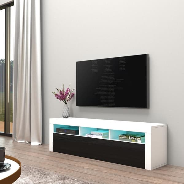 Milano Classic Wall Mounted Floating 63 Tv Stand With 16 Color Leds On Sale Overstock 23552365 Black White