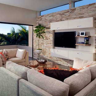 Living Room Amazing Floating Tv Stand Living Room Furniture With Brown Varnished Wood Tv Wal Modern Family Rooms Modern Family Room Design Family Room Design