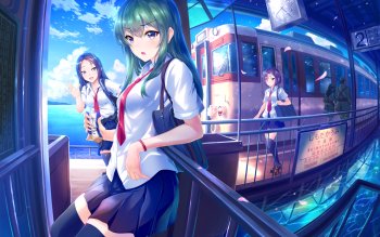 Wallpaper Anime School Girl Cute School Uniform Train Station Long Hair Wallpapermaiden